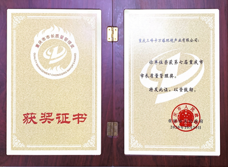 三峰卡萬(wàn)塔榮獲第七屆重慶市市長(zhǎng)質(zhì)量管理獎(jiǎng)