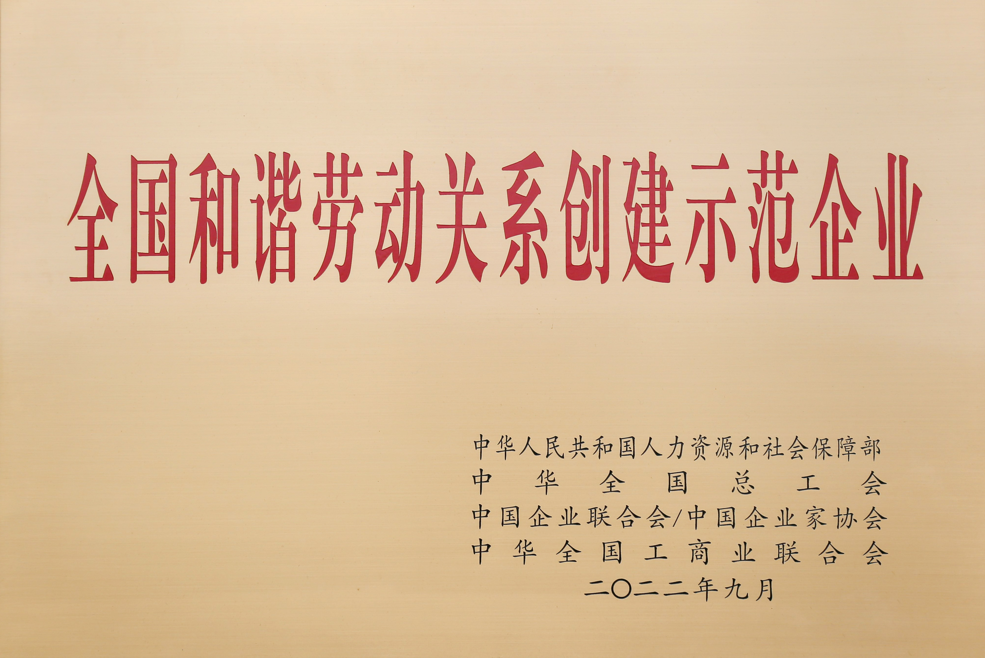 全國(guó)和諧勞動(dòng)關(guān)系創(chuàng)建示范企業(yè)