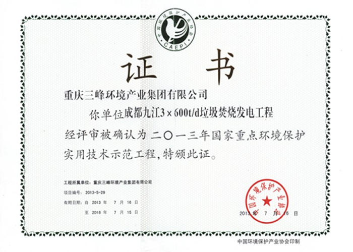 成都九江項目被評為中國環(huán)保產業(yè)協(xié)會環(huán)保示范工程